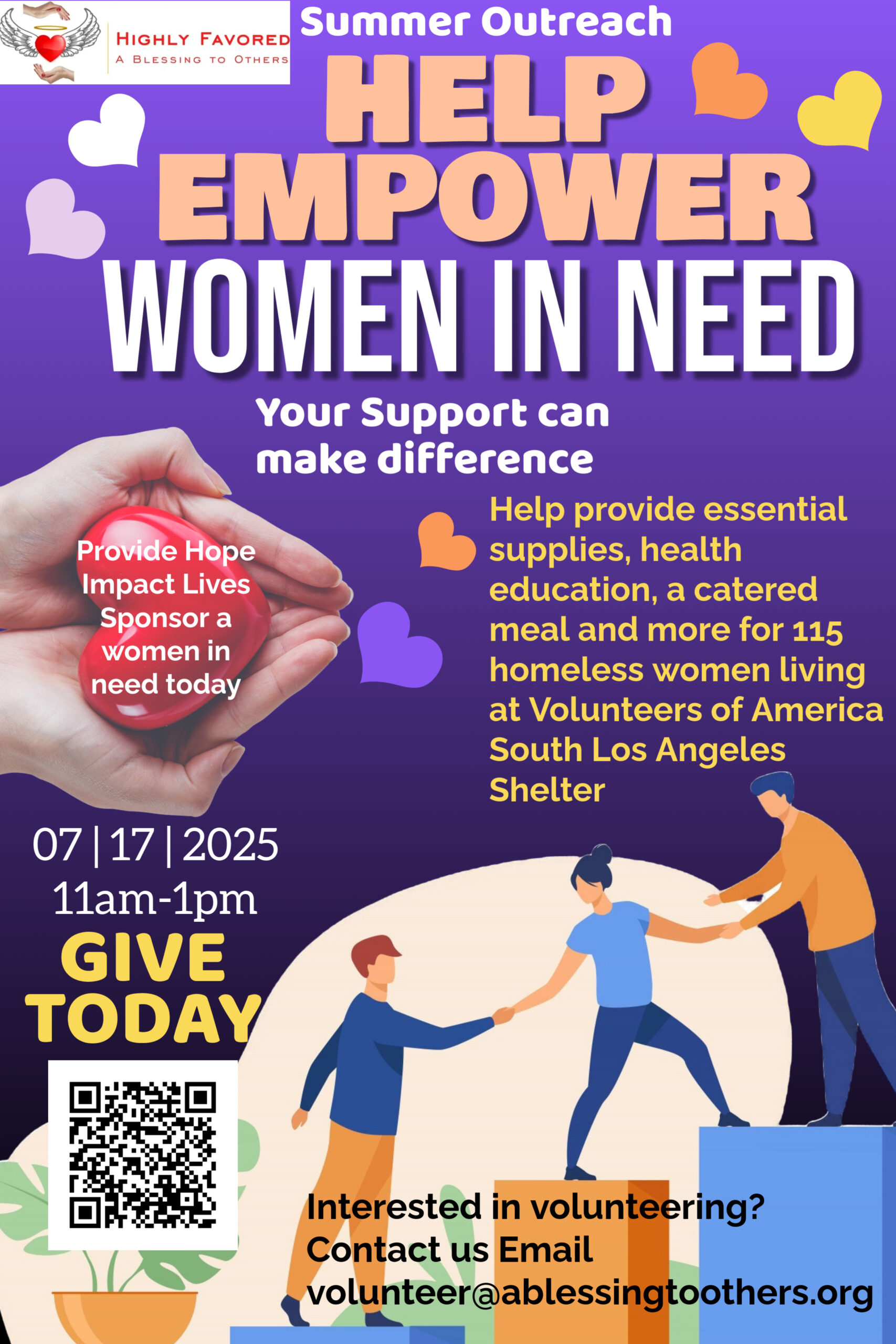 Help pack 50 Mother’s Day Baskets for the homeless women at Good Shepherd Center. Spread the word. Thank you for Being a Blessing to Others. Highly Favored: A Blessing to Others will fill the baskets with Bath and Body lotion, shower gel, hand soap and more!